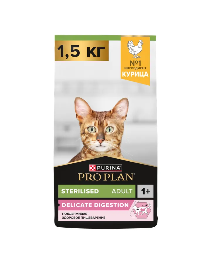 Корм сухой для кошек PRO PLAN DELICATE DIGESTION 1.5 кг с курицей для стерилизованныхНакопительная скидка