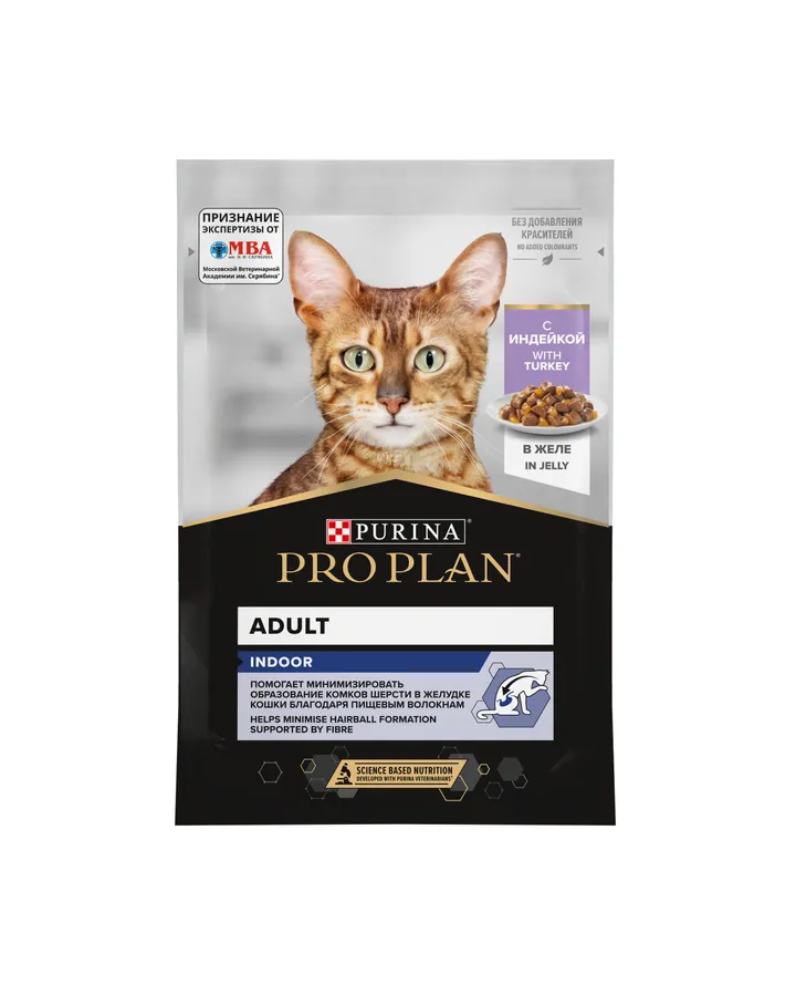 Корм влажный для кошек PRO PLAN INDOOR 85г с индейкой в желе7476 отзывов