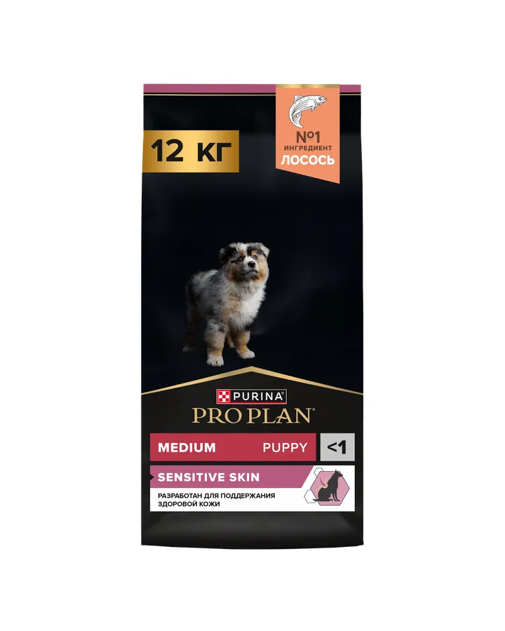 Корм для щенков PRO PLAN средних пород с чувствительной кожей с комплексом Optiderma лосось с рисом 12кгНакопительная скидка