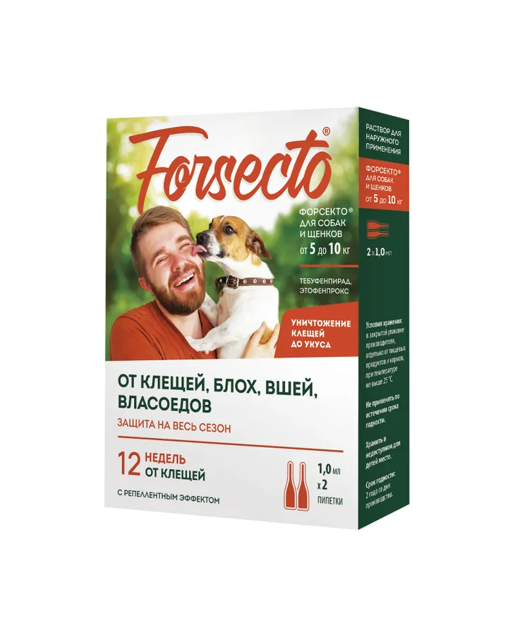 FORSECTO — инсектоакарицидные капли на холку для кошек с тебуфенпирадом и этофенпроксом. Препарат оказывает нокдаун-эффект, парализуя клещей до укуса. Активные компоненты накапливаются в липидном слое, не всасываясь в системный кровоток. Срок годности 2 года.