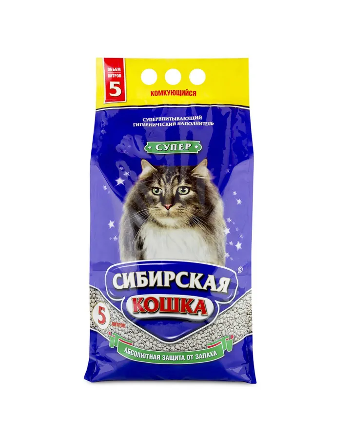 Наполнитель для кошек Сибирская кошка Экстра для длинношерстных впитывающий 5л