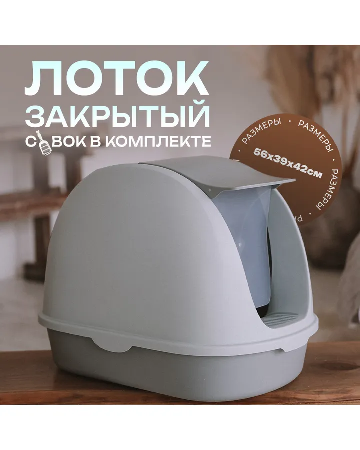 Туалет-дом для кошек Не Один Дома Чистый дом 41*53*38см Серый