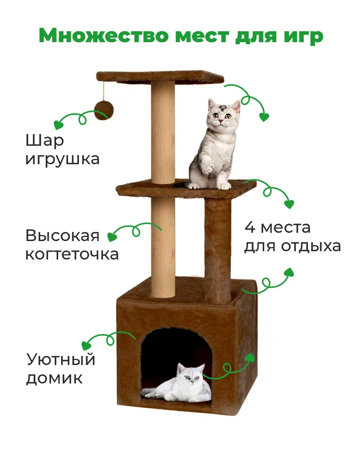 Когтеточка с домиком для кошек ZURAY коричневыйХороший комплекс, надеемся понравится мистеру Пушистые штанишки. Собрали легко и быстро, всех деталей хватило. Спасибо!