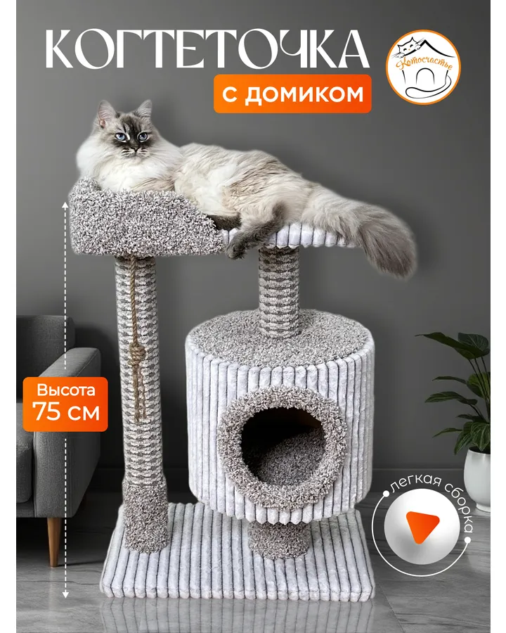 Когтеточка Котосчастье с домиком лежанкой и игрушкой