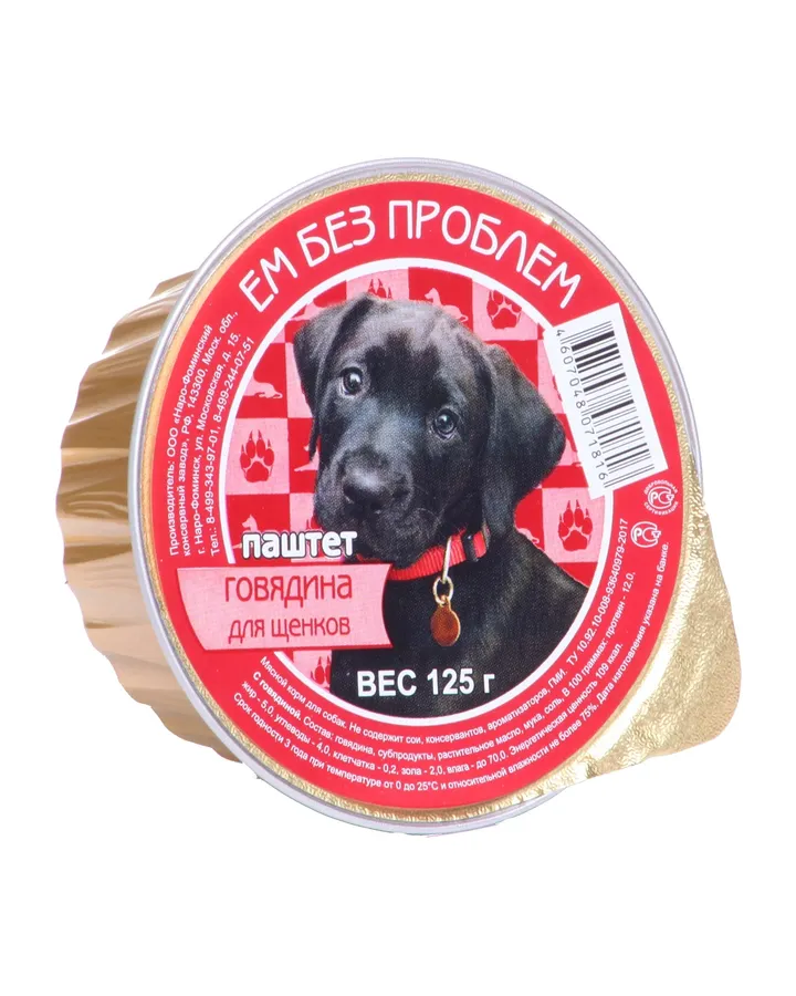 Влажный корм для собак Ем Без Проблем Говядина для щенков, 16 шт х 125 гр