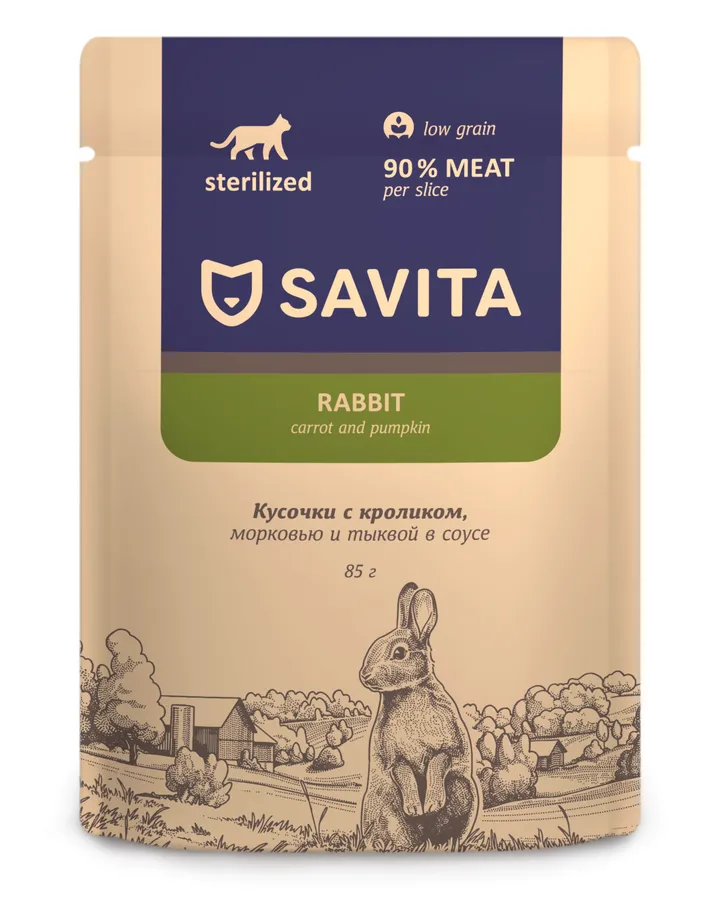 Корм для стерилизованных кошек SAVITA с кроликом и овощами в соусе 85г