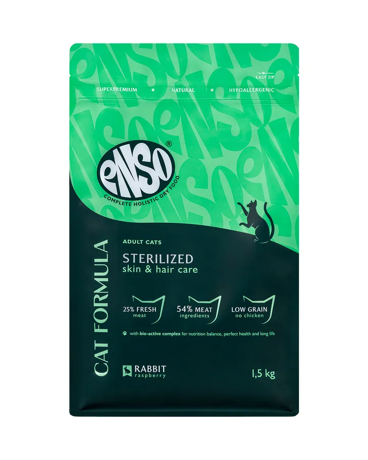 Корм влажный полнорационный ENSO для взрослых кошек Daily diet поддержание здоровья ЖКТ с кроликом пауч 85г