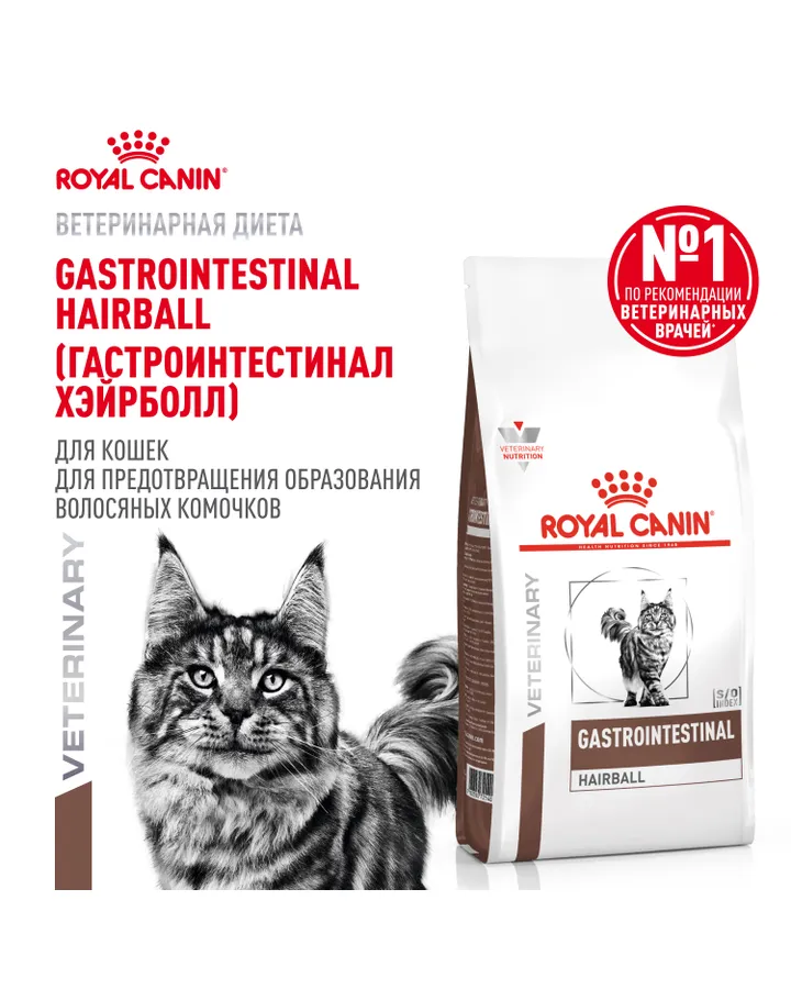 5Корм для кошек ROYAL CANIN Gastrointestinal Hairball для профилактики образования волосяных комочков 350гКорм для выведения шерсти очень помог моей старенькой кошечке британке