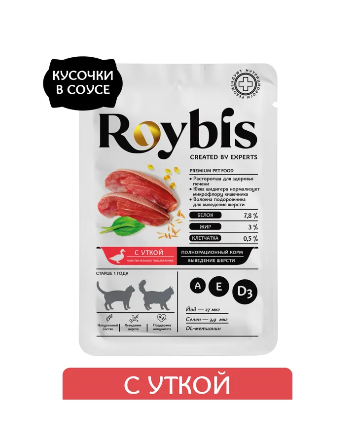 Корм для кошек Roybis 85гс уткой в желе для чувствительного пищеварения