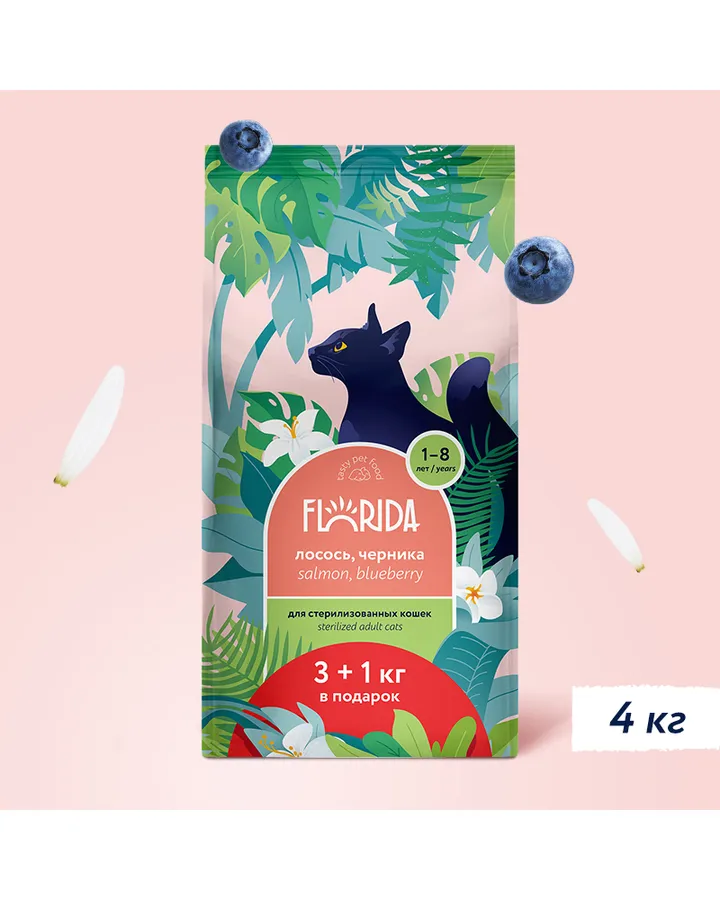 Корм для кошек Florida 800г стерилизованных лосось-черника