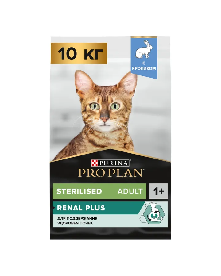 Корм сухой для кошек PRO PLAN RENAL PLUS 10 кг с кроликом для стерилизованныхНакопительная скидка