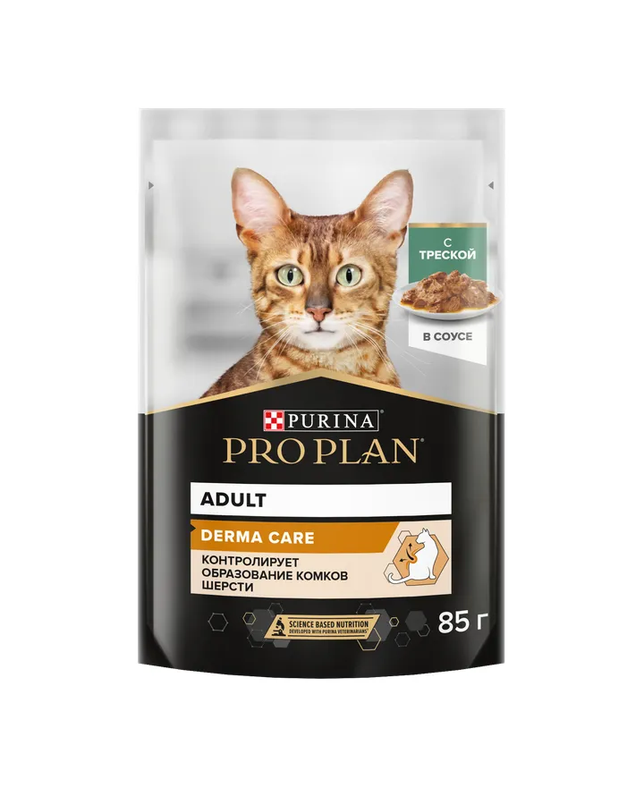 Корм влажный для кошек PRO PLAN DERMA CARE 85 г с треской в соусе для здоровья кожи и красоты шерстиНакопительная скидка
