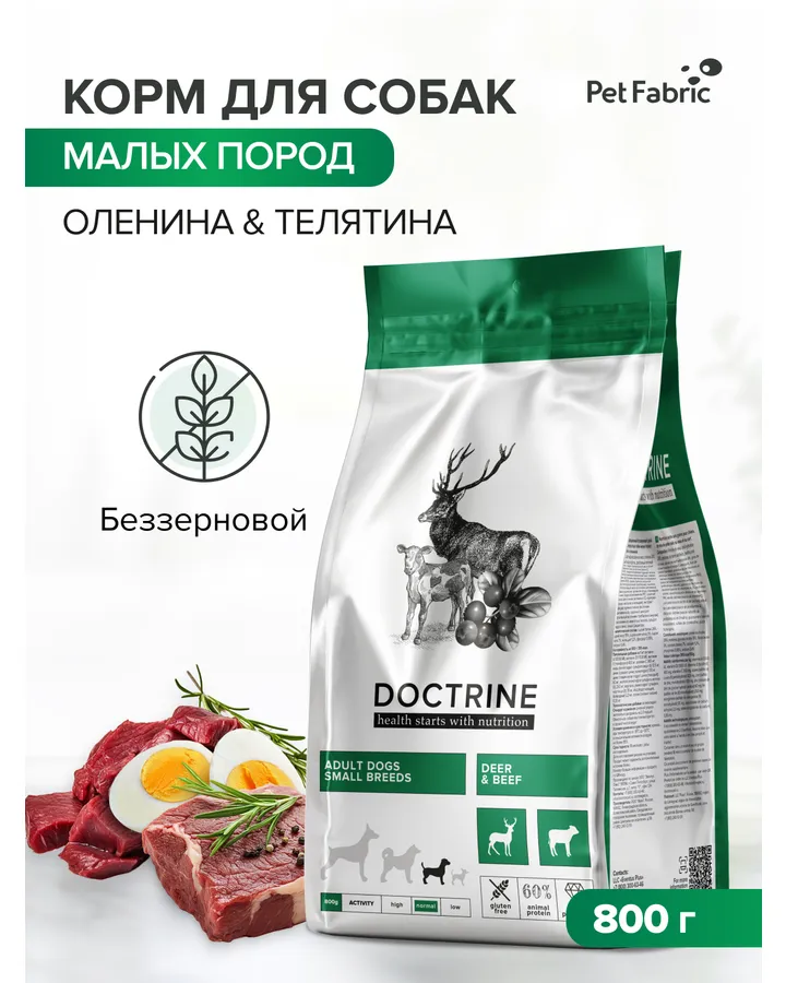 Корм для взрослых собак DOCTRINE сухой мелких пород с телятиной и олениной 800 г
