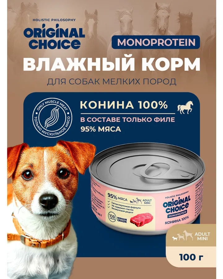 Корм для собак Original Choice Monoprotein Adult Mini мелких пород конина 100г