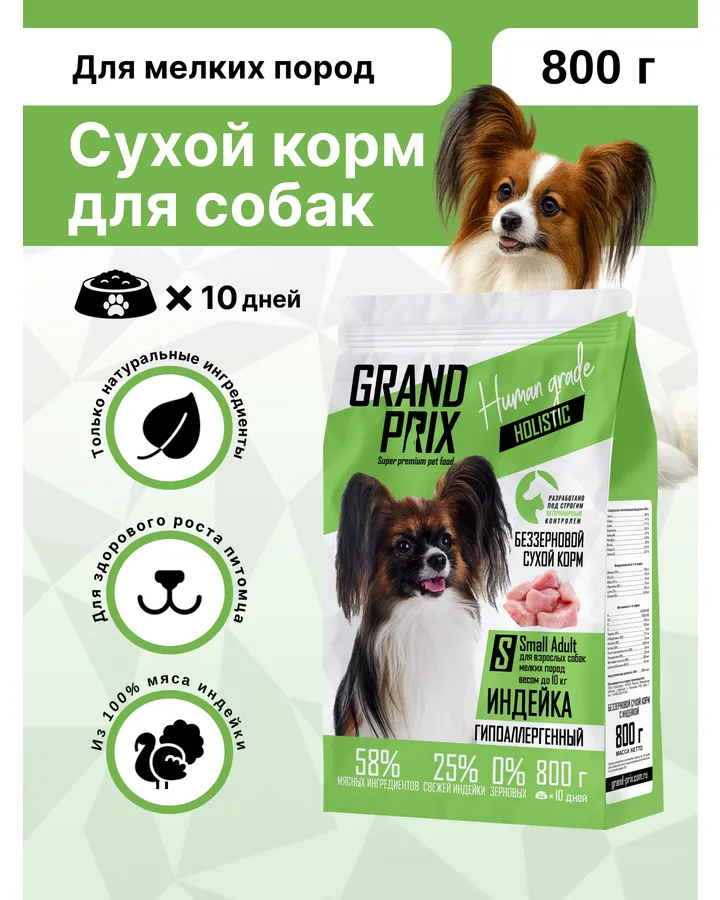 5Корм сухой Grand Prix Для щенков собак мелких и мини пород 800 г.Хороший состав, мелкие гранулы, щенок просто в восторге и с удовольствием уплетает корм.