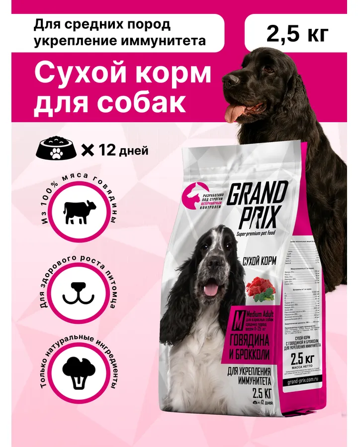 Корм сухой для щенков собак мелких пород Grand Prix Small Junior ягненок, 2,5 кгМы наконец-то нашли корм для своего питомца. Очень много перепробовали: от премиум до минимального ценового сегмента. Проблема была в том, что таксе ( в марте нам будет год) - не подходили корма: обильно сыпалась шерсть, запоры и т.д. Ветеринар сказала - дело в корме. Решила попробовать данную марку - и ОНА НАМ подошла. Собака сразу же начала есть ( хотя обычно не подходит по началу ), не давится им. Что важно, гранулы - маленькие! Собаке комфортно есть и она наедается. Вообщем корм супер, рекомендую 👍