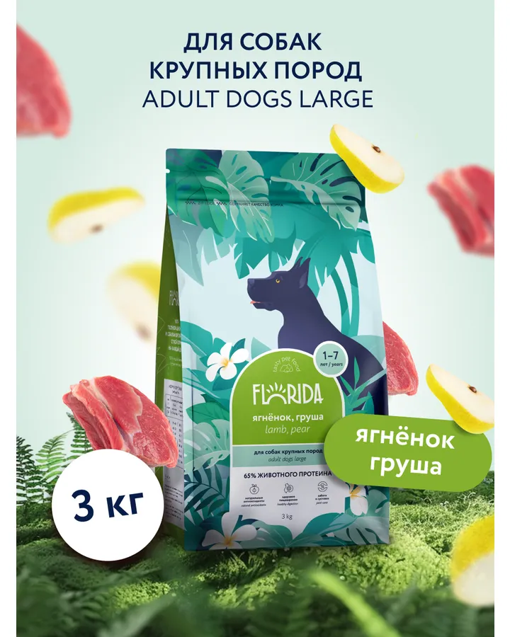 Корм для собак Florida 1кг средних пород ягненок-грушаКорм нам нравится. Мы Йорк-бивер, у нас аллергия на курицу. Искали замену Монжу говядина. Этот корм подошёл, хоть и не говядина). Берём ещё консервы этой же фирмы, ягнёнок, телёнок и лосось.