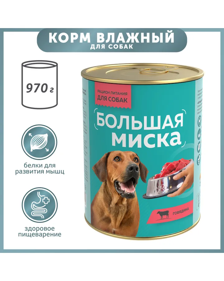 Корм для собак Большая миска 970г Говядина ж/б