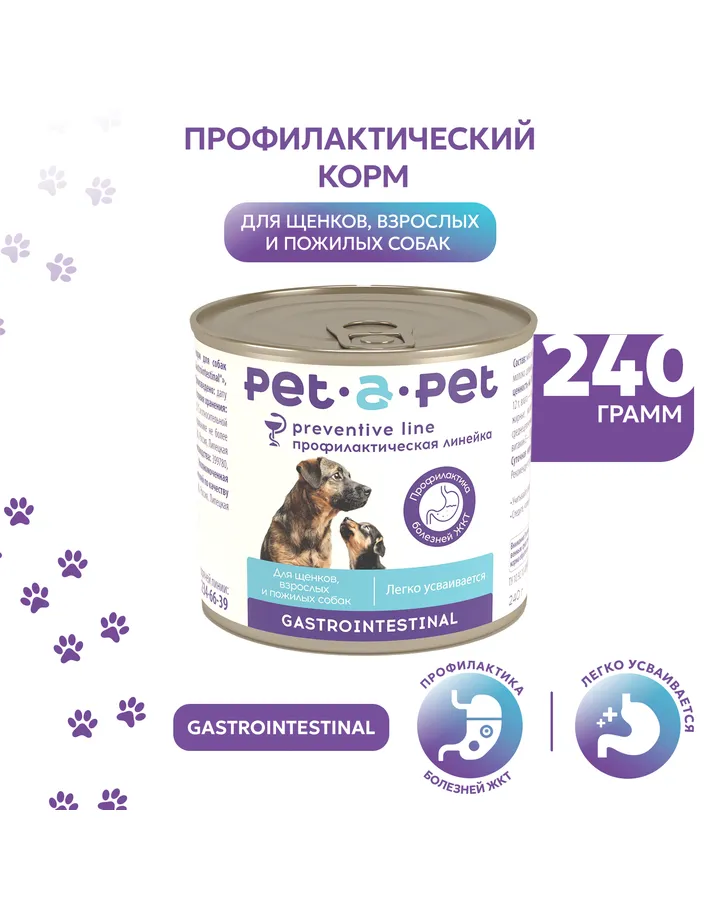 Корм для собак Pet-a-Pet 240г диетический профилактика болезней ЖКТ GastrointestinalНакопительная скидка