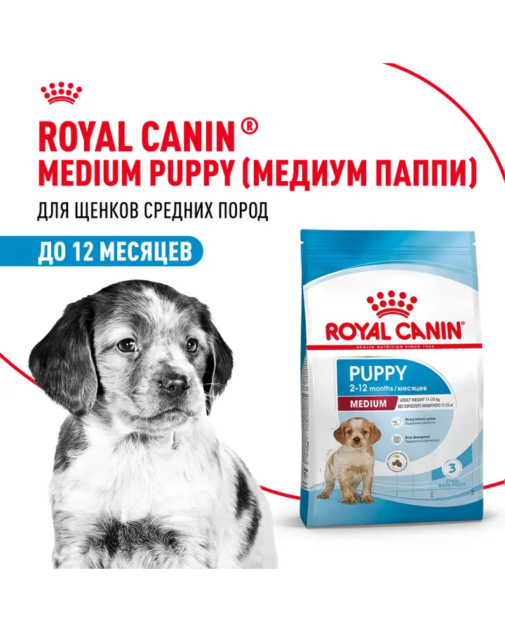 5Корм для щенков ROYAL CANIN Medium Puppy средних пород 14кгХороший корм для щенков, наш корги потребляет его с удовольствием.