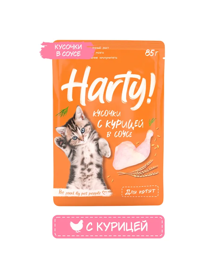 5Корм для котят Harty 85г с телятиной кусочки в соусе консервированныйКотик есть с удовольствием 😻 Шерсть у нас блестит 🥰