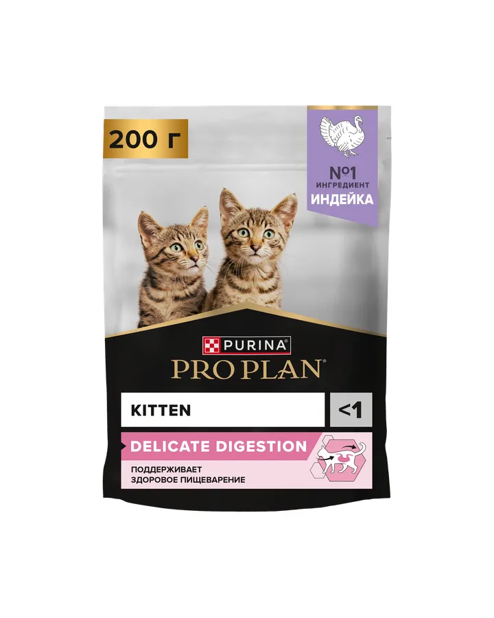 Корм сухой для котят PRO PLAN DELICATE DIGESTION 200г с индейкойКотик ест с удовольствием