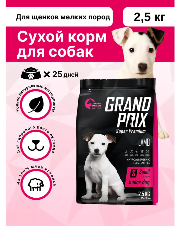 Корм сухой для щенков собак мелких пород Grand Prix Small Junior ягненок, 2,5 кг
