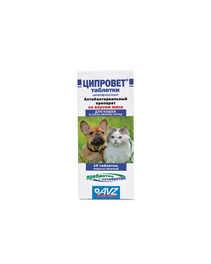 Препарат антибактериальный для собак и кошек АВЗ мелких пород Ципровет 10таблеток