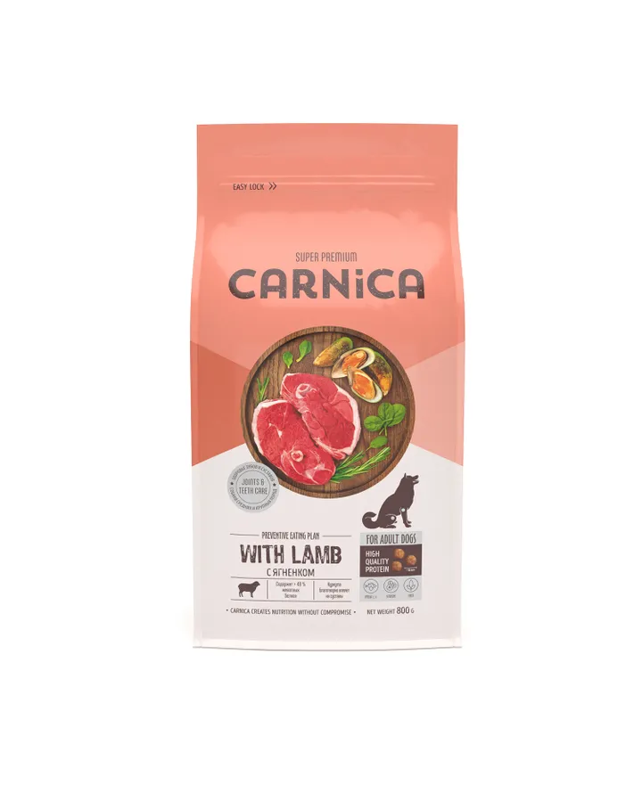 Корм для собак Carnica 0.8кг ягнёнок-рис для средних и крупных пород сухой