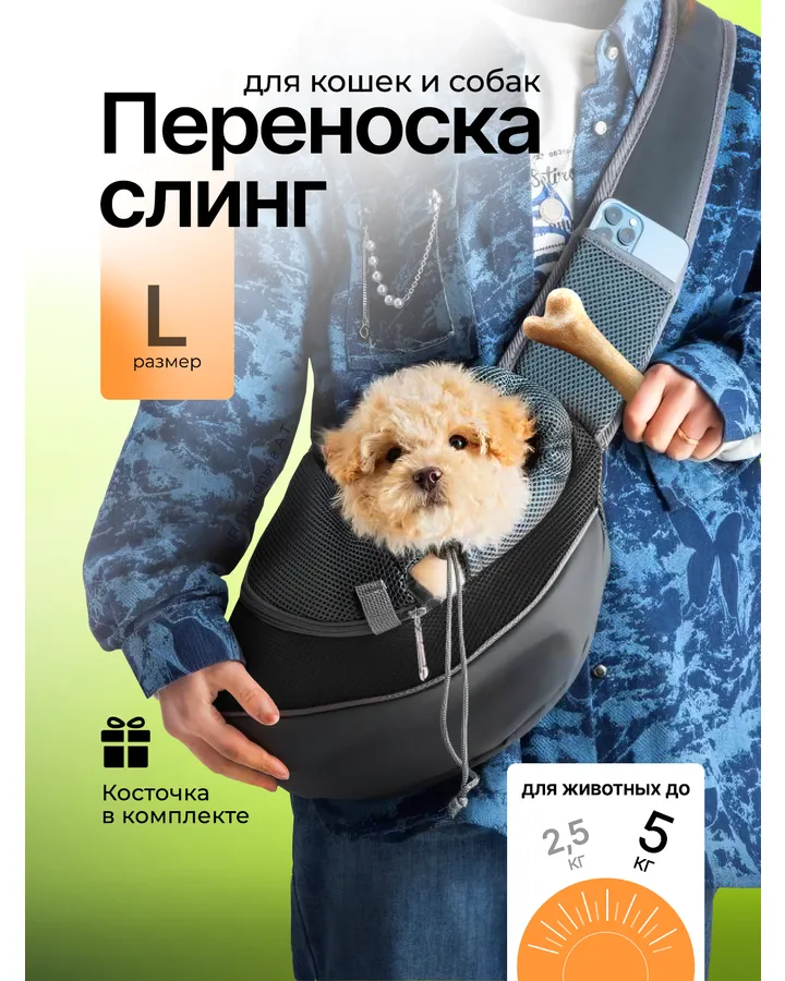 Рюкзак переноска слинг SuperPets для собак и кошек размер L