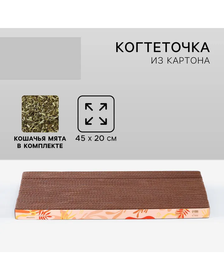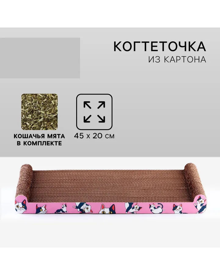 Когтеточка из картона с кошачьей мятой Пушистое счастье «Нежность» 45 см х 20 см х 3 см