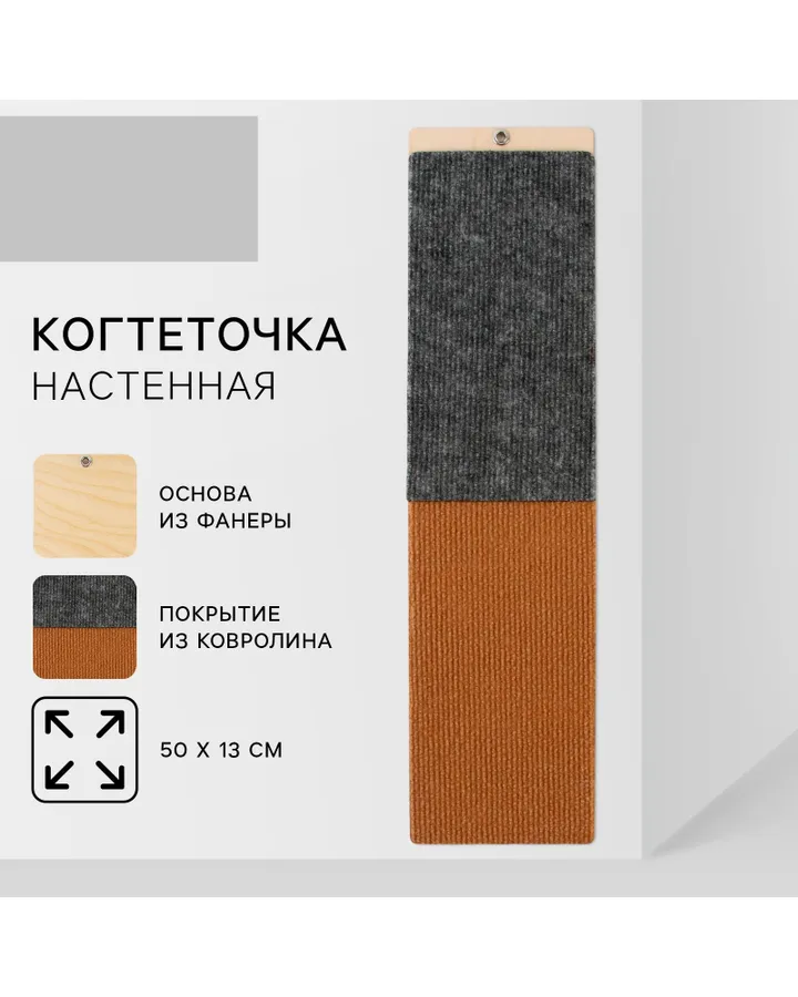 Когтеточка настенная одинарная Пушистое счастье 50 х 13 см серо-бежевая