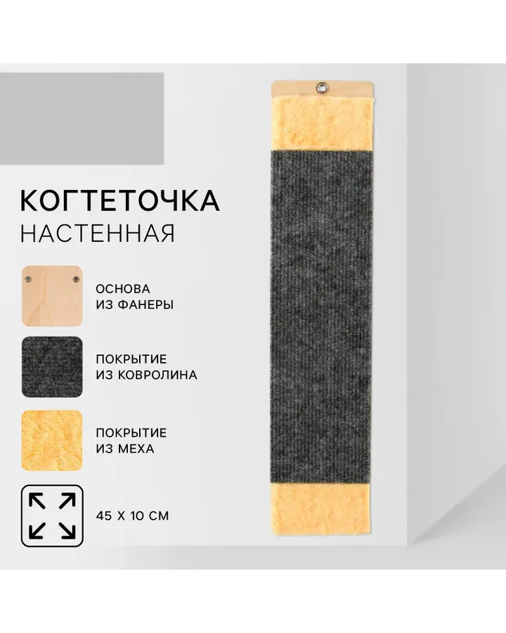 Когтеточка настенная с мехом Пушистое счастье 45 х 10 см, серая