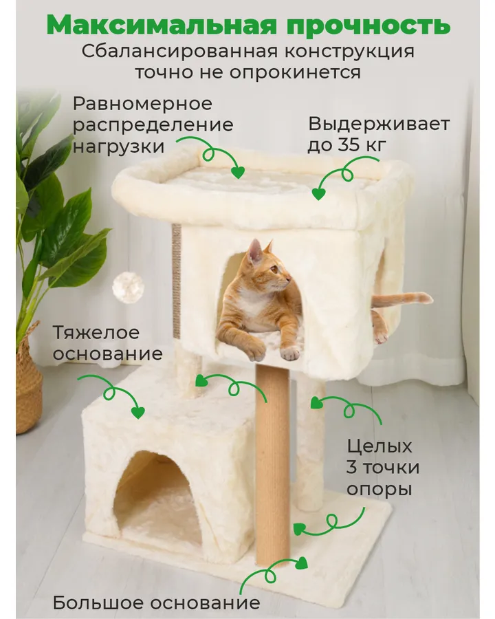 Когтеточка с домиком для кошек ZURAY бежевый