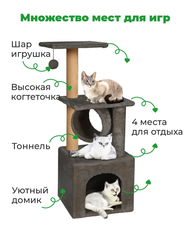 Когтеточка-домик для кошек 4в1 ZURAY бежевый