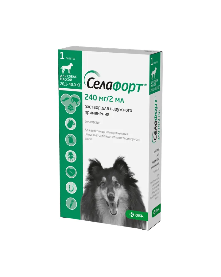 Капли от блох и гельминтов для собак KRKA Селафорт 240мг 2мл