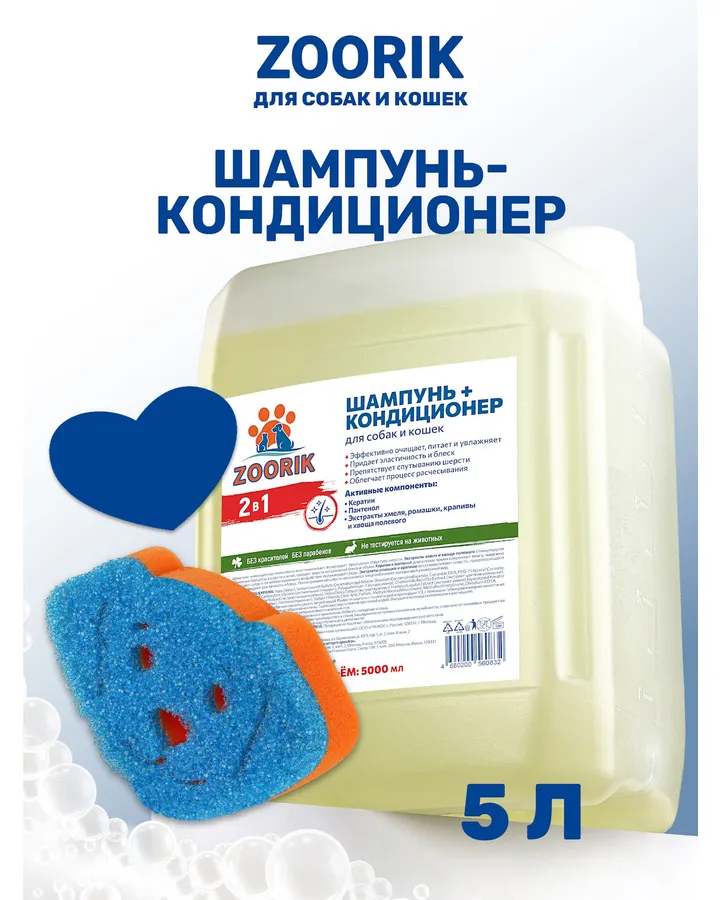 5Шампунь-кондиционер ZOORIK для собак и кошек 2 в 1 5000 млШампунь супер шерсть мягкоя пушистая и глаткая пахнет супер