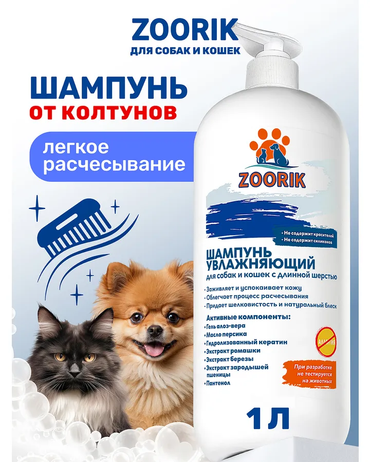 Шампунь для длинной шерсти ZOORIK увлажняющий 1000 мл