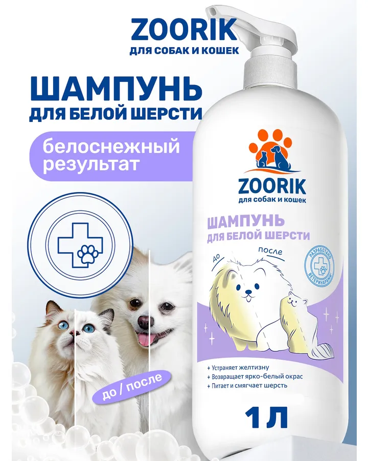 Шампунь для собак и кошек ZOORIK с белой шерстью 1000 мл