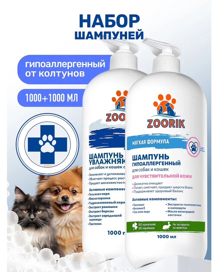 Набор шампуней для собак и кошек ZOORIK очищающих 1000+1000 мл