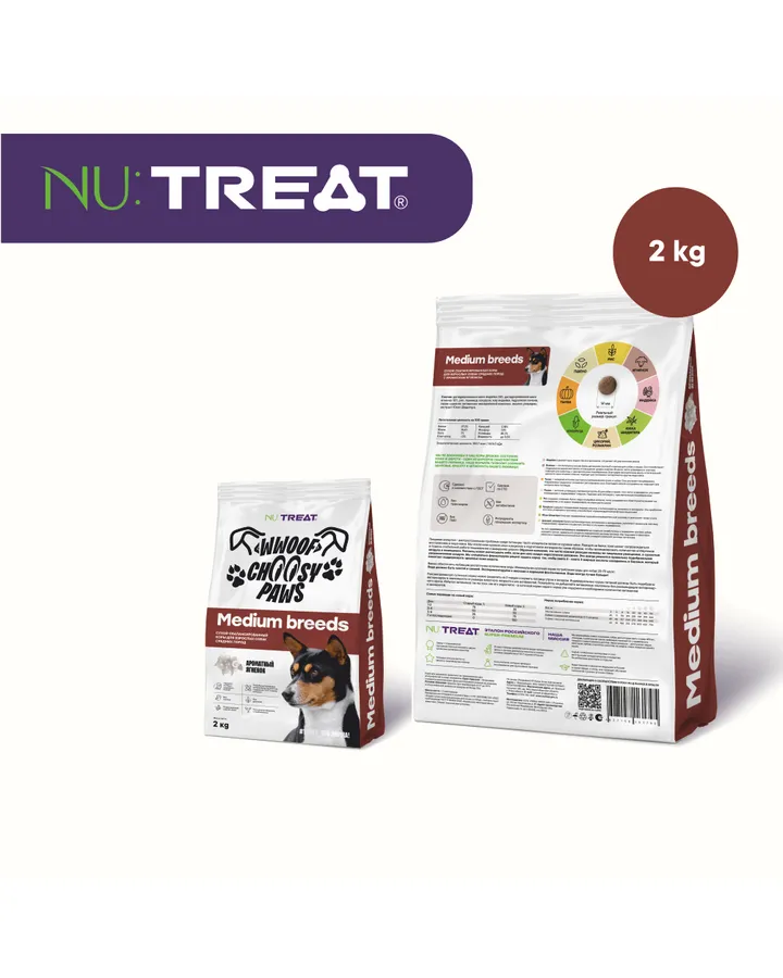Сухой корм для собак средних пород Nu:Treat Medium breeds Ароматный ягненок 2 кг
