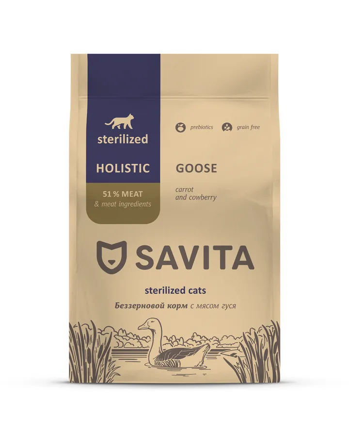 Корм для кошек SAVITA для стерилизованных сухой беззерновой с мясом гуся 400г