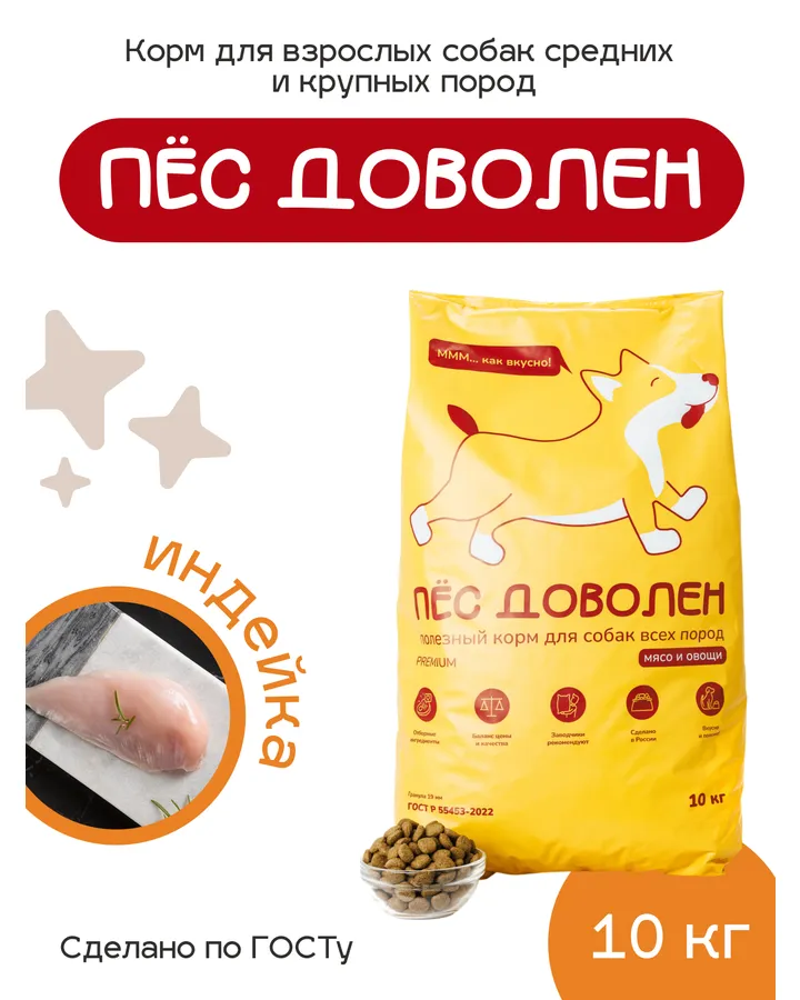Корм сухой Пёс Доволен с индейкой 10 кг