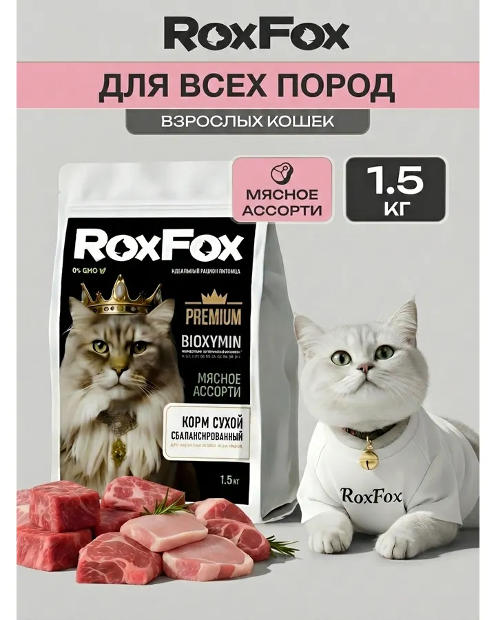 5Корм для собак RoxFox для взрослых собак крупных и средних пород полнорационный мясное ассорти 2 кгПросто отличное очень рад что купил для собаки