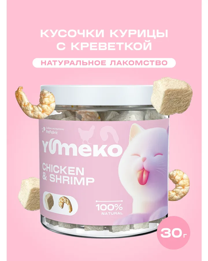 Натуральное лакомство для собак и кошек YUMEKO Кусочки курицы с креветкой