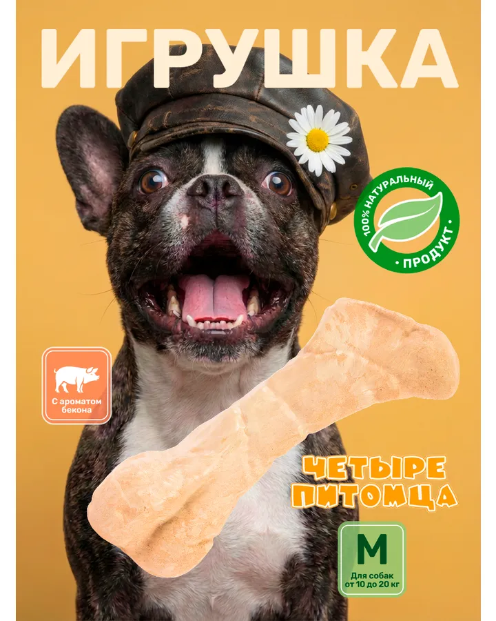 Игрушка для собак Четыре питомца Кость со вкусом бекона для мелких и средних пород
