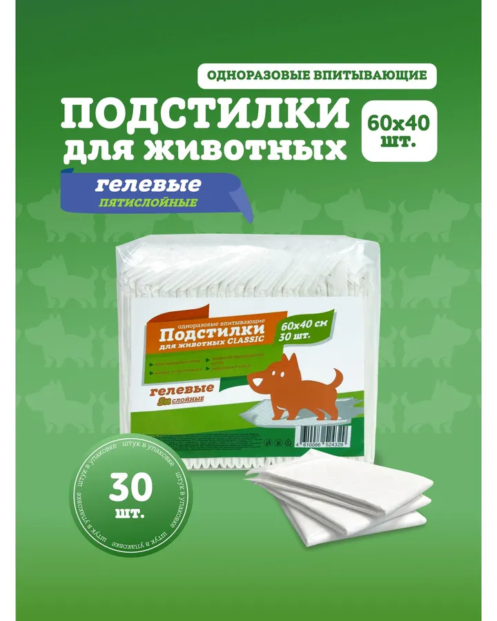 5Подстилки Доброзверики впитывающие с липким фиксирующим слоем 60*40см 30шт ЛС40/30Отличные подстилки.