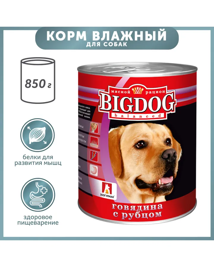 Корм для собак Зоогурман 850г Big Dog говядина с рубцом ж/б