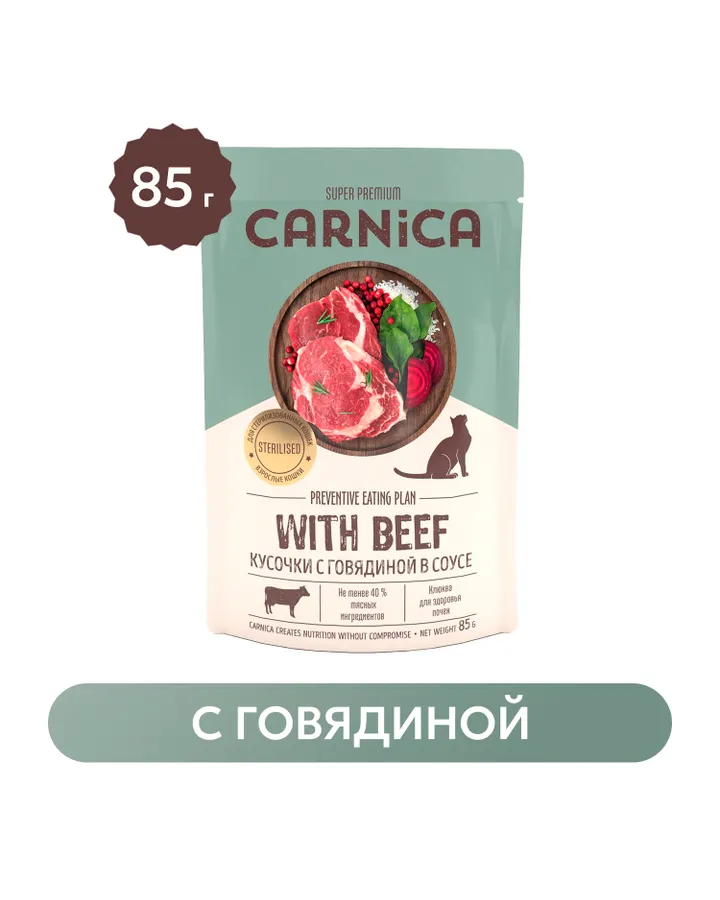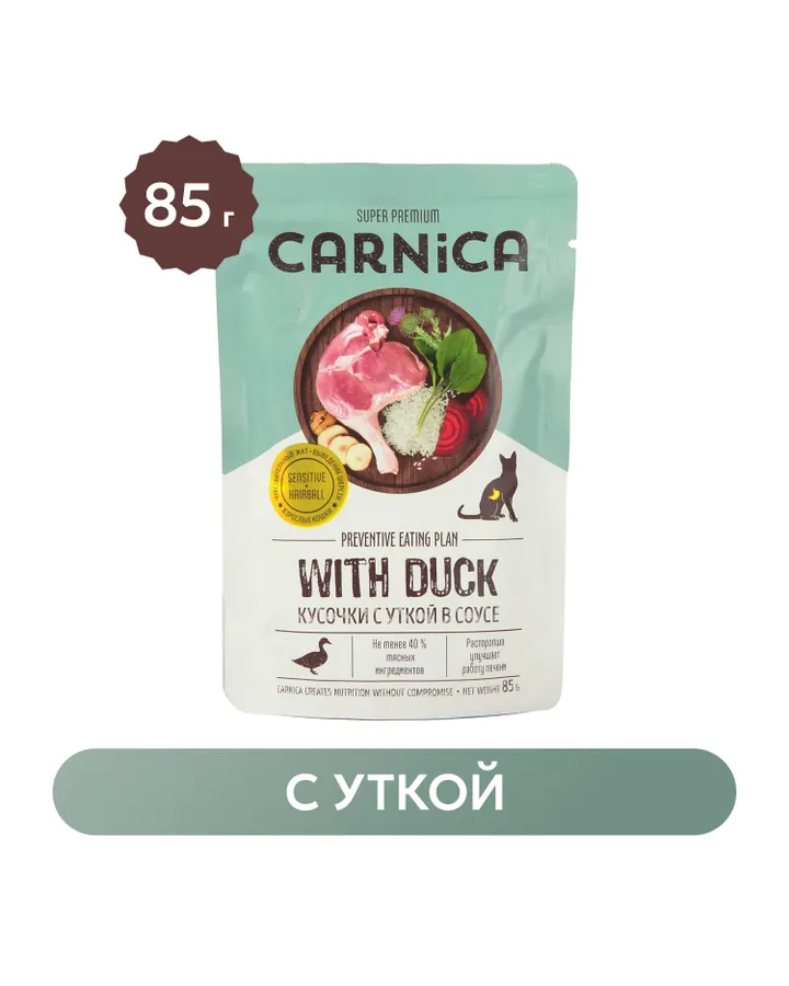 Корм для котят Carnica 85г полнорационный кусочки в соусе с курицей консервированныйОтличный корм Нашим питомцам,очень нравится