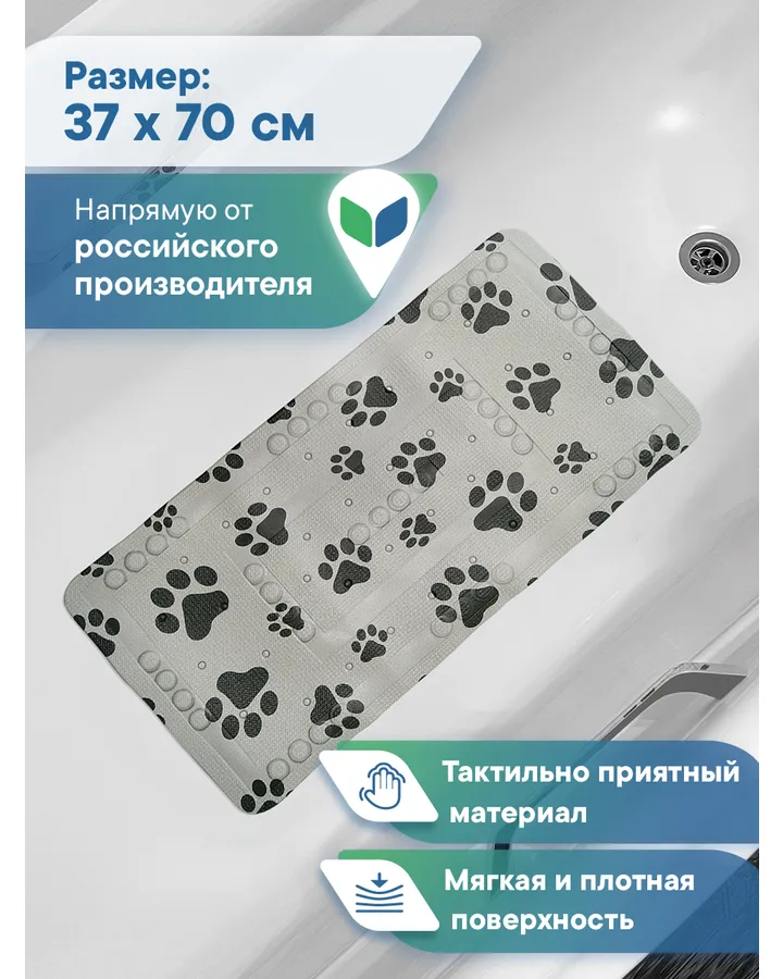 Коврик для ванны VILINA c присосками для животных 37х70 см. серый